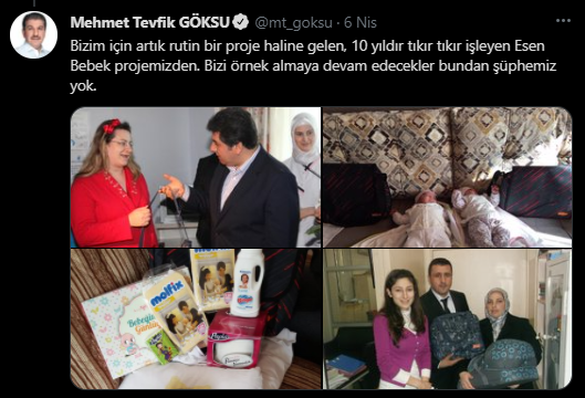 İstanbul Büyükşehir Belediye Meclisi AK Parti Grup Başkanvekili ve Esenler Belediye Başkanı Mehmet Tevfik Göksu, Zehra Zümrüt Selçuk’u etiketleyerek, “Esen Bebe projemizle, 10 yıldır biz bu işi Esenler’de zaten yapıyoruz Sayın Bakanım. Bunlar en az 10 yıl geriden geliyor.”