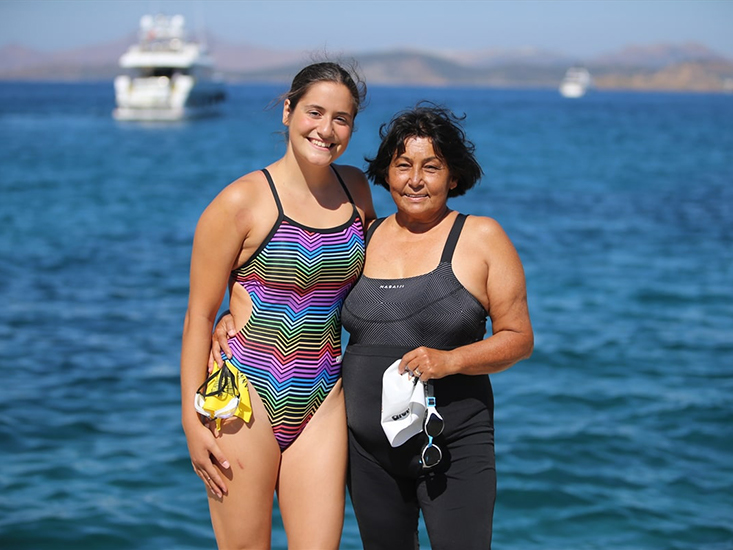 ANTRENÖRÜYLE BİRLİKTE YÜZDÜ