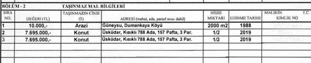 YSK’nın kararında, Cumhurbaşkanı Erdoğan ve eşi Emine Erdoğan’ın kimlik bilgileri, taşınmaz ve taşınır mal bilgileri, banka ve menkul değerleri ile borç-alacak bilgileri detaylı bir şekilde yer aldı.