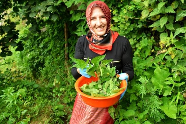 İki çocuk annesi Rabia Aydın, doğada kendiliğinden yetişen ısırgan otlarını topluyor. Kuruttuğu ısırgan otlarını satarak aile bütçesine katkı sağlıyor ve ekonomik kazanç elde ediyor.
