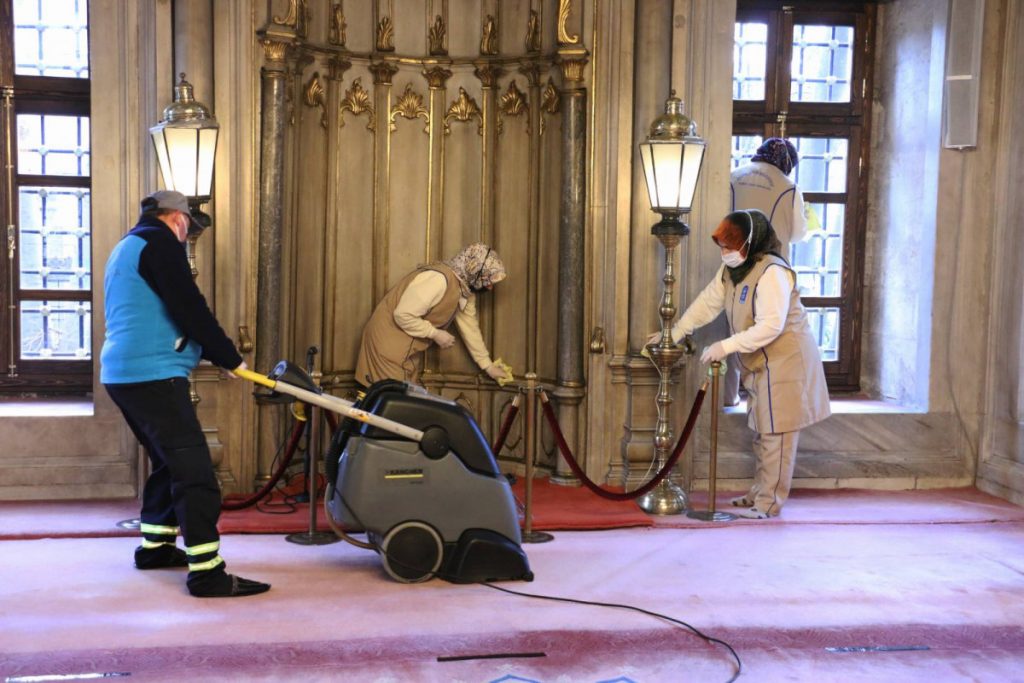 Yüzyıllardır Ramazan’ın en güzel şekilde yaşandığı, İslam aleminin gözbebeği Eyüpsultan’da Ramazan Ayı hazırlıkları kapsamında Eyüpsultan Camii Meydanı ve cami içerisi gül suyu ile yıkandı, temizlendi. Caminin içerisi, avlusu, abdest alma yerleri Eyüpsultan Belediyesi dezenfeksiyon ekipleri tarafından dezenfekte edildi.
