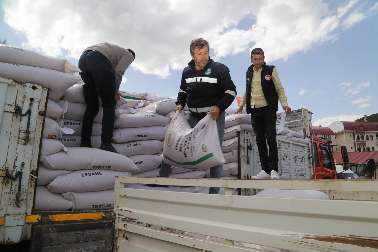 Konuşmaların ardından üreticilere arpa tohumu, yulaf tohumu, yeşil mercimek ve nohut tohumu olmak üzere toplam 31 ton tohum dağıtımı gerçekleştirildi.