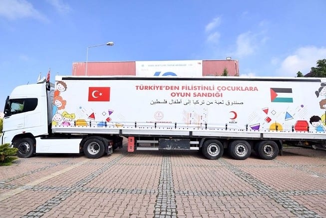 Çocukların tüm gelişim alanlarını destekleyecek nitelikte hazırlanan 31 ayrı materyal ve 52 farklı ürünün bulunduğu oyun sandıklarının içinde Cumhurbaşkanı Recep Tayyip Erdoğan’ın Filistinli çocuklara mesajı da yer alıyor. Oyun sandıklarının yüklendiği tırlar, Millî Eğitim Bakanı Ziya Selçuk’un katıldığı törenle Ankara’dan uğurlandı.