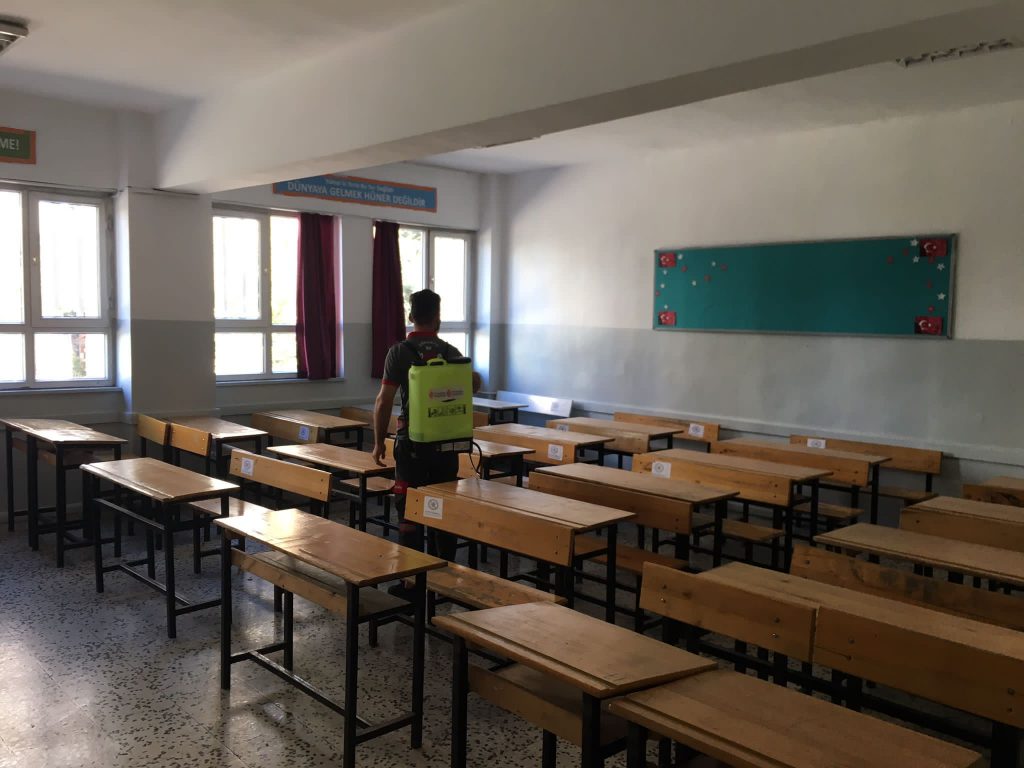 Koronavirüsle mücadelede normalleşme sürecine girilmesiyle birlikte, ilk ve orta öğretim kurumlarında bugün itibariyle yüz yüze eğitim başladı. Ümraniye Belediyesi, 2021-2022 Eğitim ve Öğretim Yılı’na başlanması nedeniyle ilçe sınırları dahilinde yer alan tüm okullarda büyük bir temizlik ve dezenfekte çalışması yaptı. Öğrencilerin sağlıklı ve güvenli ortamda eğitim görmelerini amaçlayan Ümraniye Belediyesi, okullarda yer alan tüm kullanım alanlarını büyük bir titizlikle temizleyerek, dezenfekte etti.